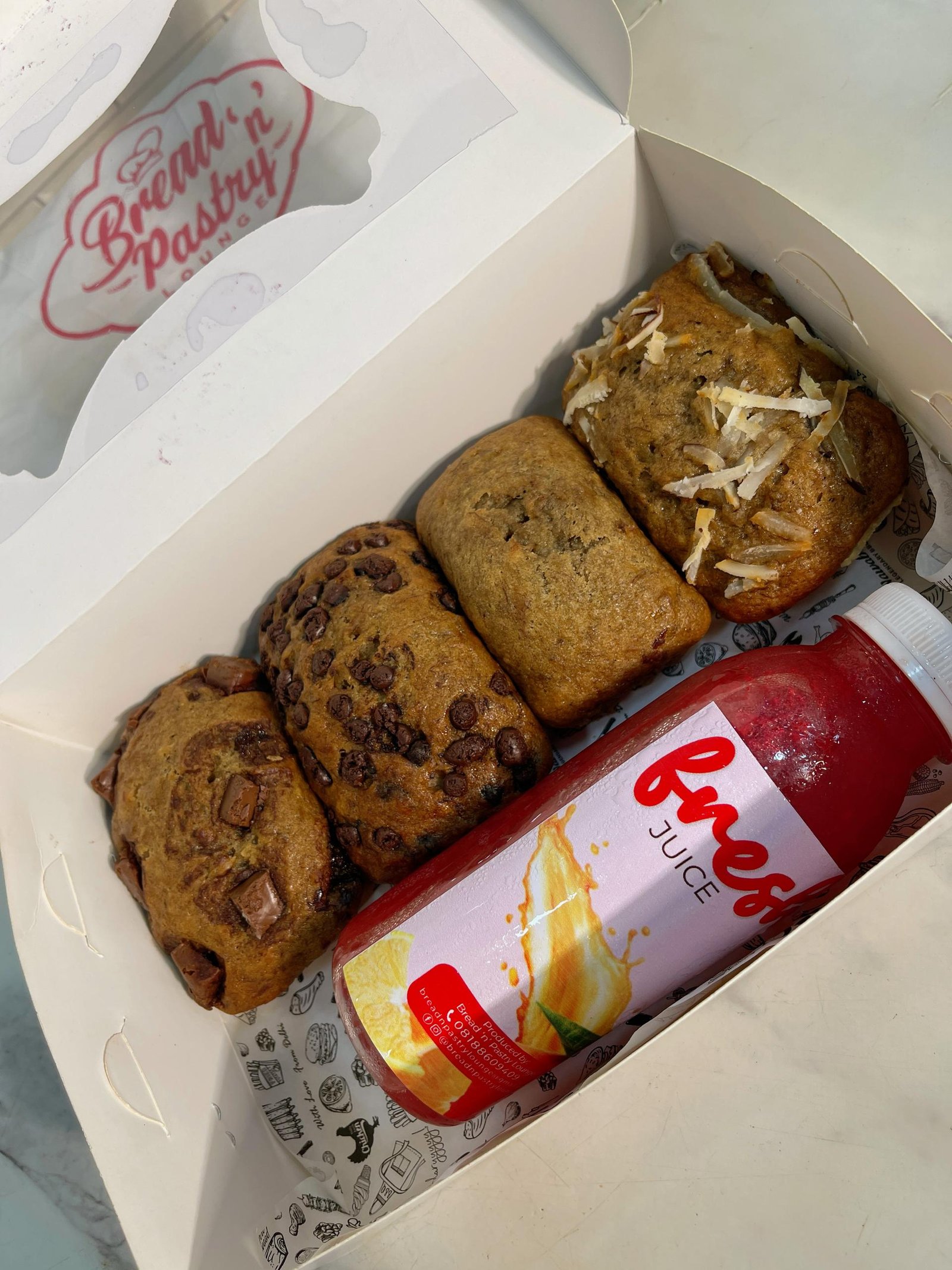 Contains minis + fresh juice.